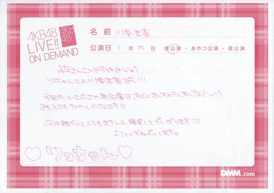 川栄生誕とか知らずに応募したらたまたま、久しぶりに公演入ったけどたまたま生誕とかラッキーだった。初めて近くで見たけど冷静に考えて研究生なら一番可愛いな