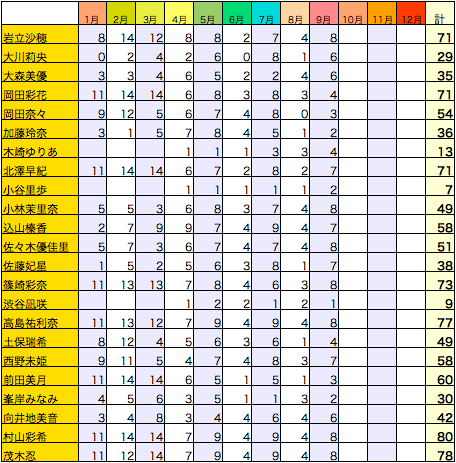 ちなみにキャプテンだけ見ると峯岸だけが異様に少ない