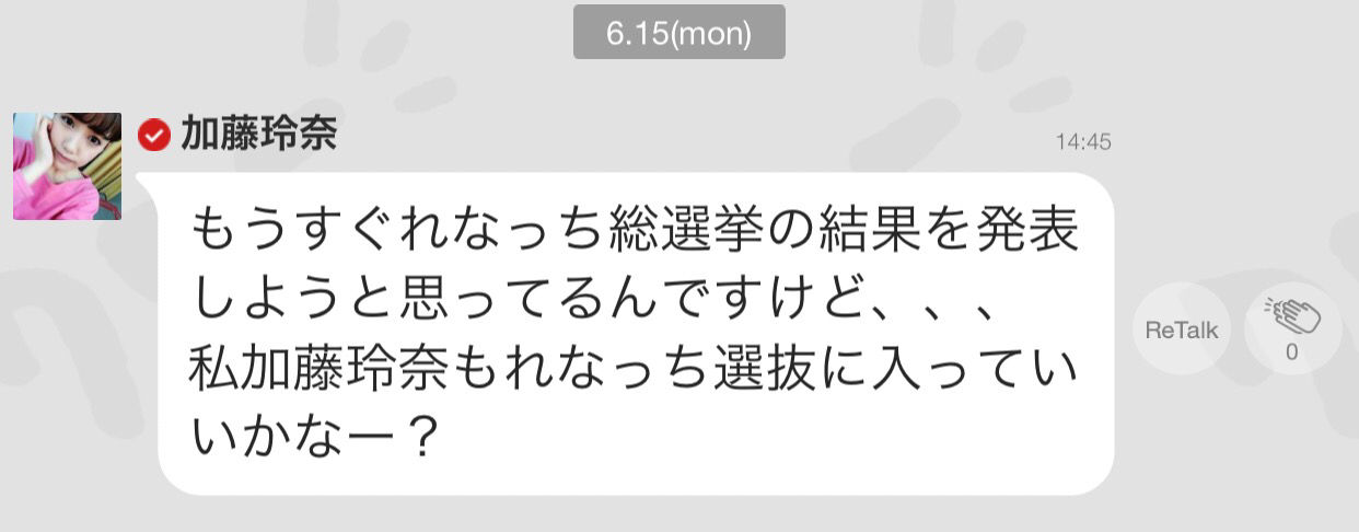 今日の夜8時ごろにここでれなっち総選挙の結果を発表したいと思います! 集まってね😁✨