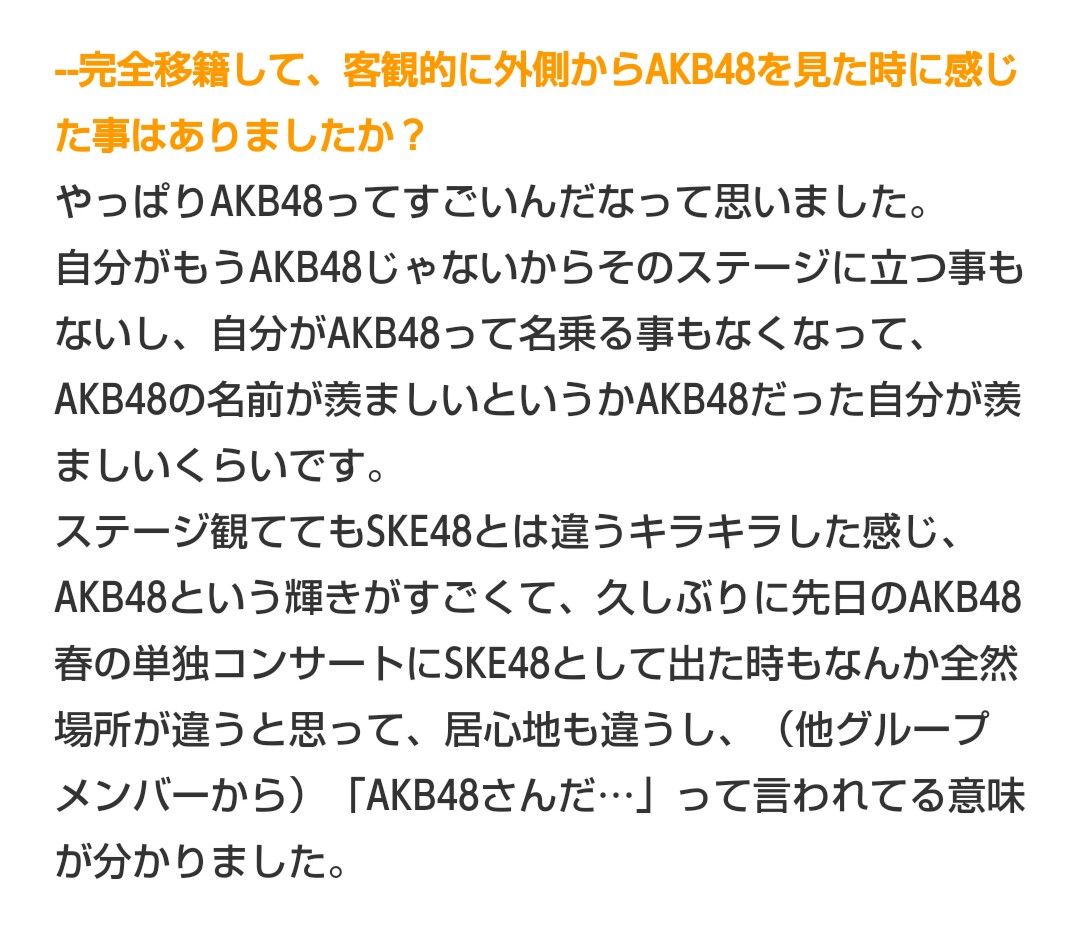 本心では、間違いなく、チャンスがあれば、AKBに戻りたいと思っているよ!(爆)