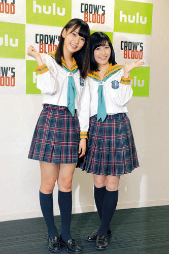 Huluオリジナルドラマ「CROW'S BLOOD」の囲み取材が東京都内で行われ、ダブル主演のAKB48渡辺麻友とHKT48