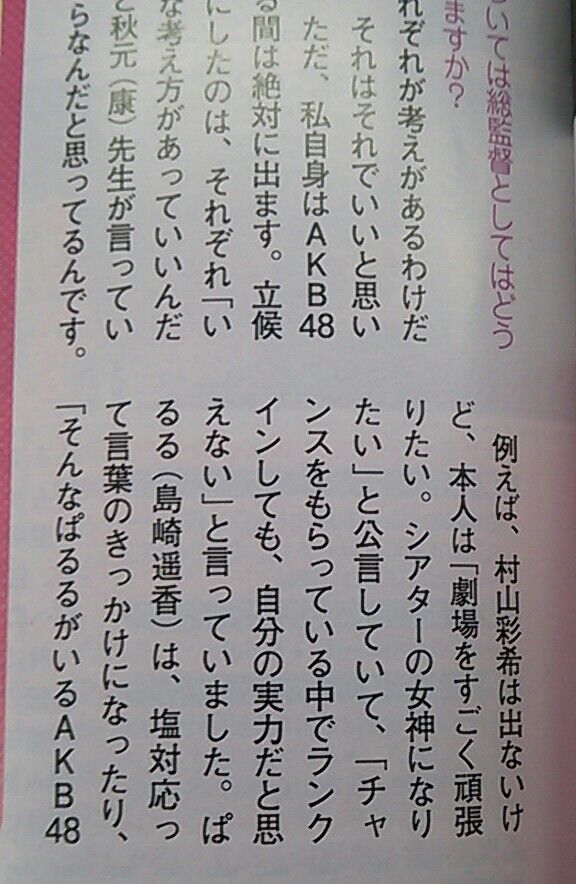 他の地下ドルにでも行きなさい、賛否あるがAKB =選抜総選挙なんだよ。
