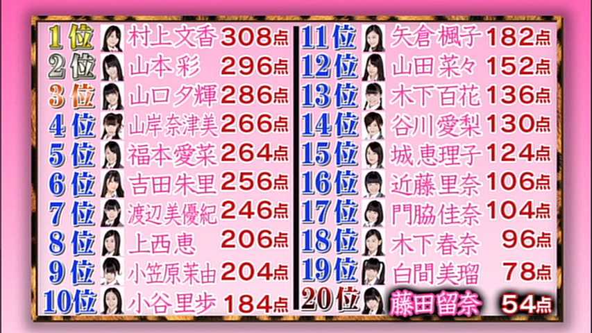 最下位は去年のまなぶくんのテストではみるるんだったけど、先日のチャリティーイベントのテストを見る限り候補は他にもいそうな感じw