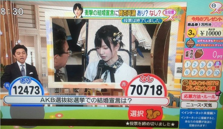 「総選挙で結婚発表していいのか」でアンケート取ったら「無し」が勝つの当たり前じゃん