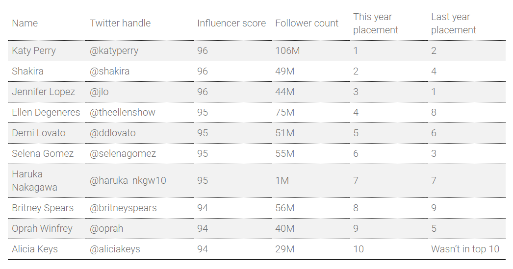 なんと今年もTwitter世界でもっとも影響力のある女性の7位に選ばれました ありがとうございます!本当に心から嬉しい