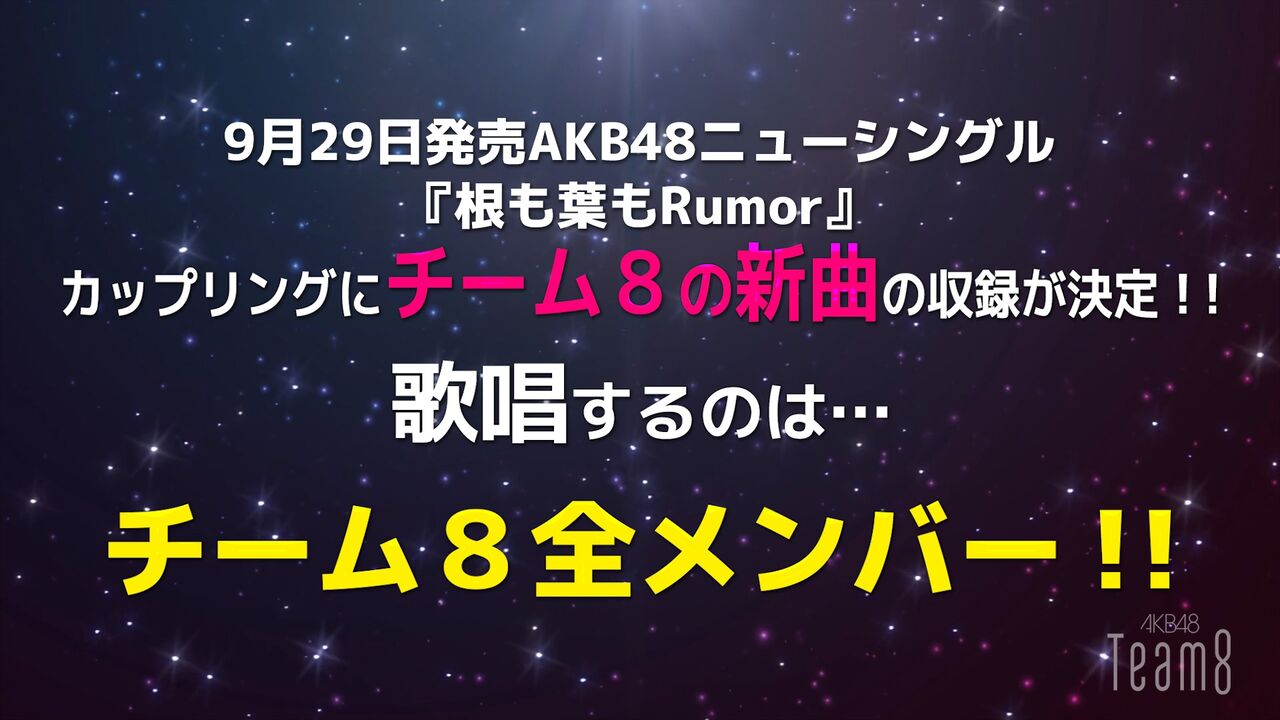 9月29日(水)発売 AKB48 58thシングル「根も葉もRumor」にチーム8楽曲が収録決定!