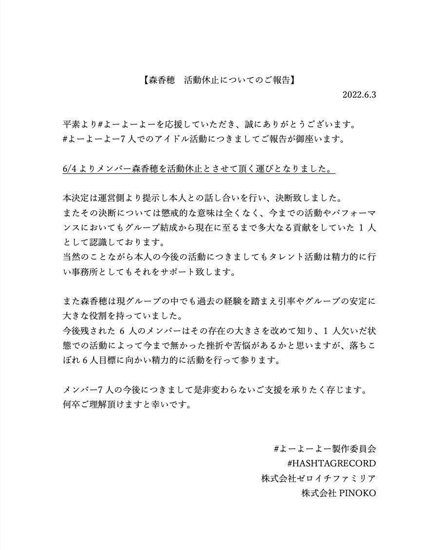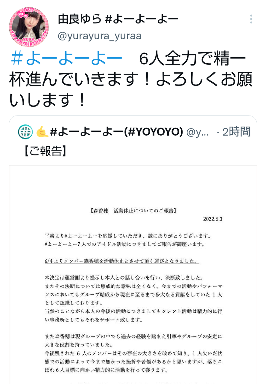 森が辞めたいならはっきり卒業にすると思うけど病気や怪我でもないのに活動休止はよくわからん