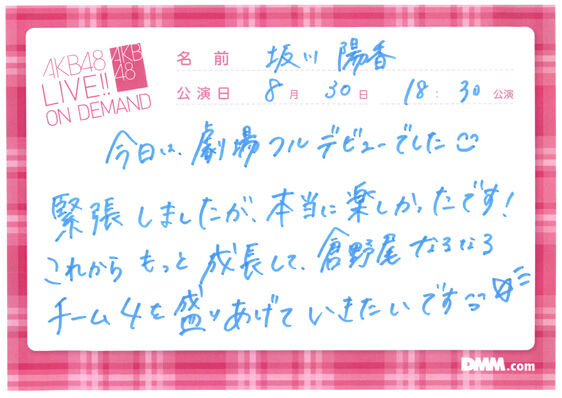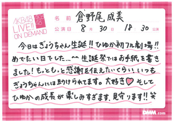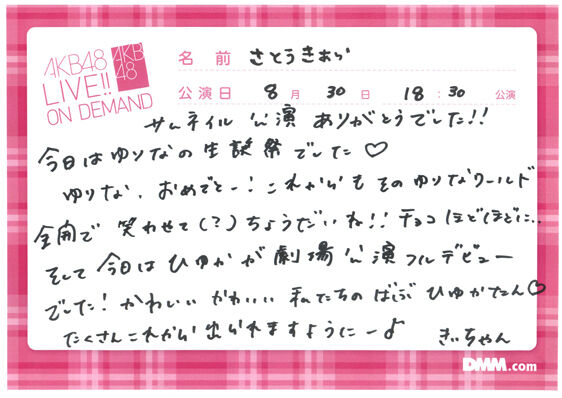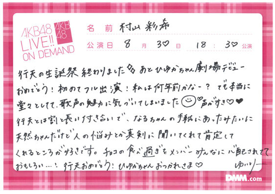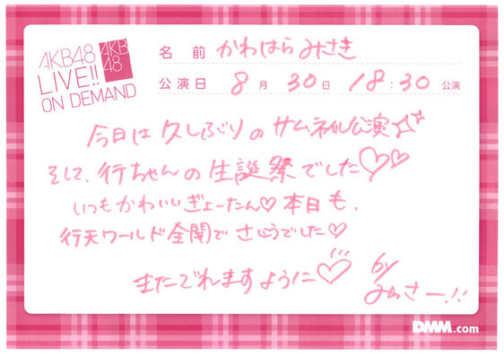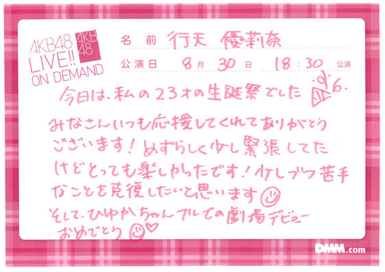 '22/8/30 サムネイル公演・行天優莉奈生誕祭 オンデマコメント