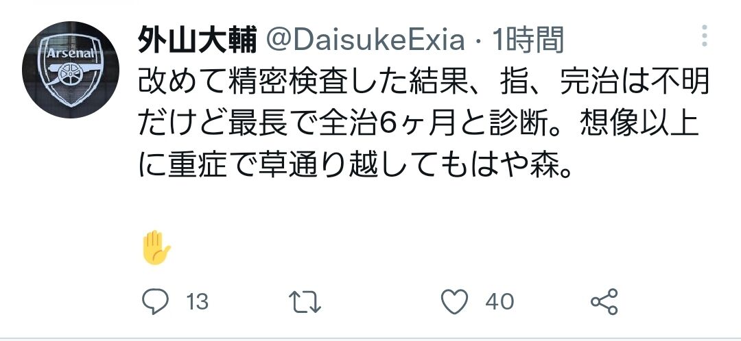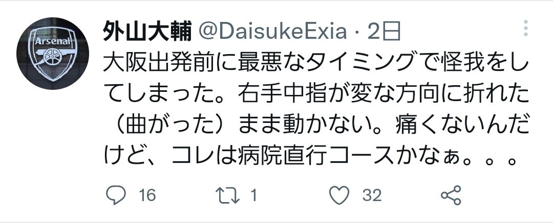 全治不明とかこえーな