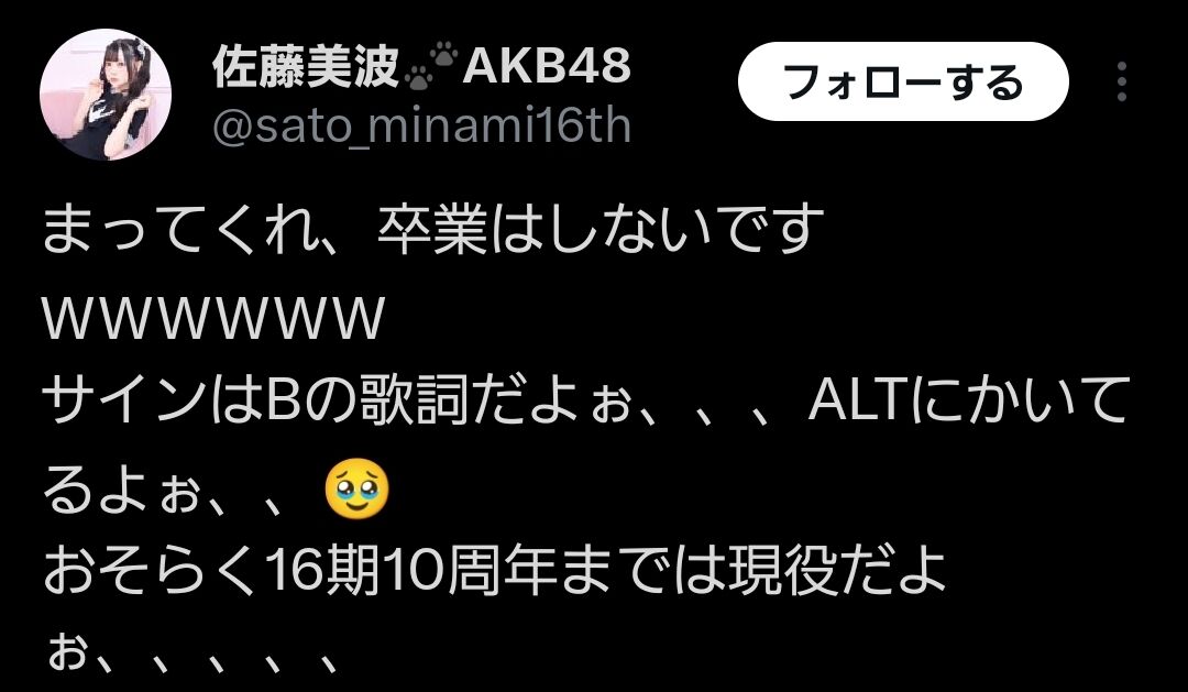 佐藤美波「私、佐藤美波はAKB48を卒業します」