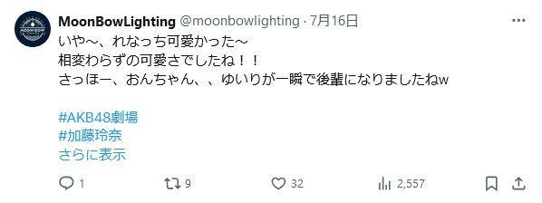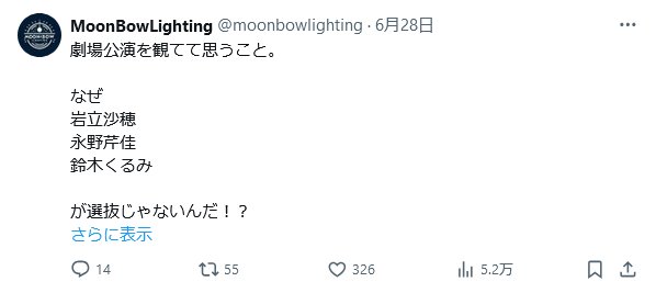 メンバーは知らんがファン側で今まで劇場の照明は素晴らしい!この人じゃなきゃ!みたいな声が上がったことある?ないでしょ