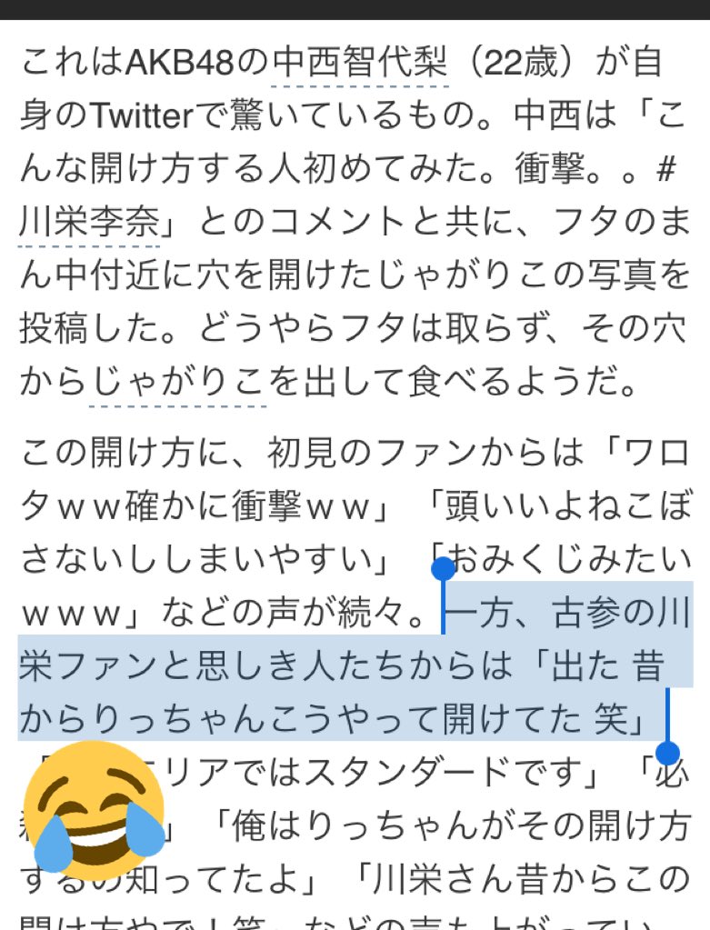 【画像あり】川栄のじゃが○この開け方が衝撃的wwwwwwwwwwwwwwwwww