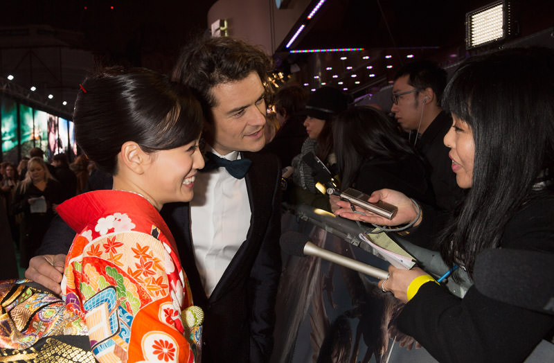 前田敦子、晴れ着姿でロンドンのグリーンカーペットに登場 オーランド・ブルームと2ショットも