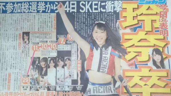 SKE48松井玲奈、今年8月いっぱいの卒業を放送中のオールナイトニッポンにて発表。8月末でのSKE48コンサートも企画・調整中とのこと。