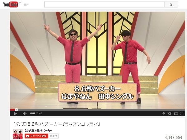 注目度が急上昇しているお笑いネタ「ラッスンゴレライ」。お笑いコンビ・8.6秒バズーカーの持ちネタで、2014年12月24日にYouTubeに公開した公式動画が、今年1月13日までの約3週間で414万回以上再生されるなど、人気となっている。