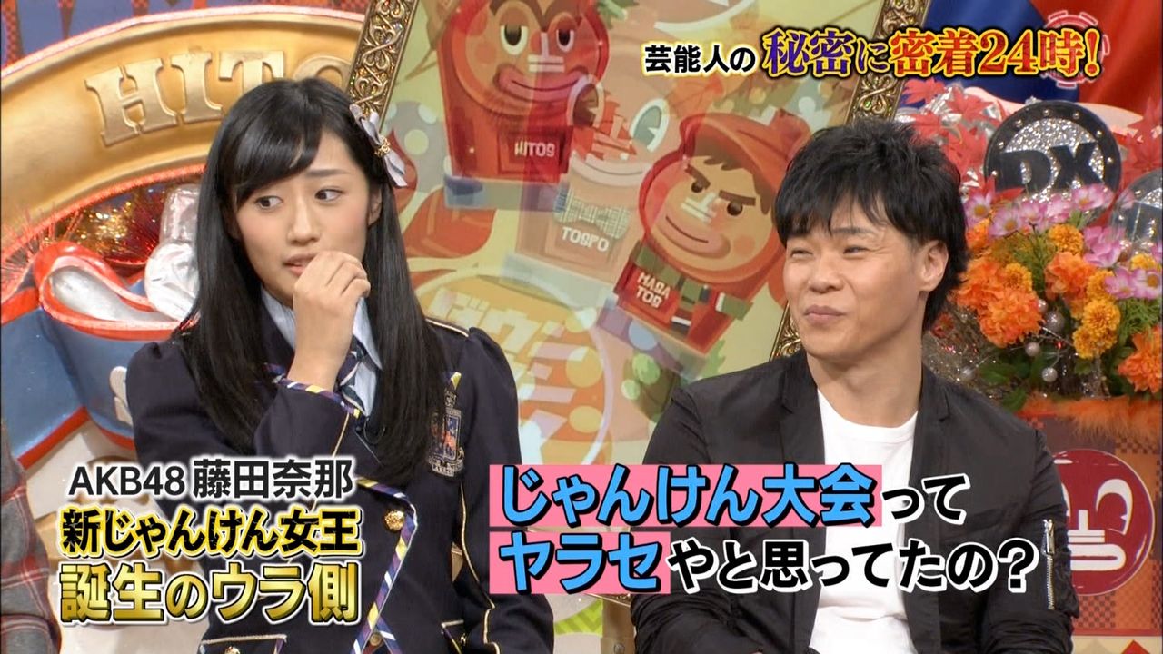じゃんけん大会、AKB48チームKの藤田奈那が優勝しました。おめでとう。チャンスの順番が来ましたね。さて、どんなソロ曲にするか?藤田奈那はどんな曲でもこなせるので迷うなあ。