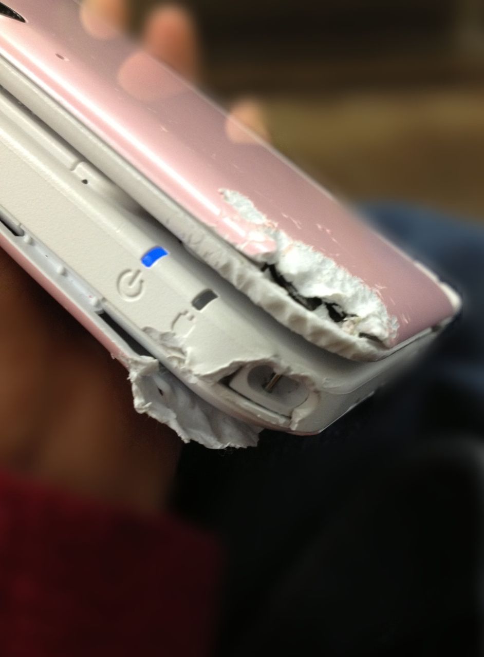 こんなにバキバキになった理由は両手ふさがってて携帯おくところなかったから帽子のつばのとこ乗せたら落ちてこんなになった!